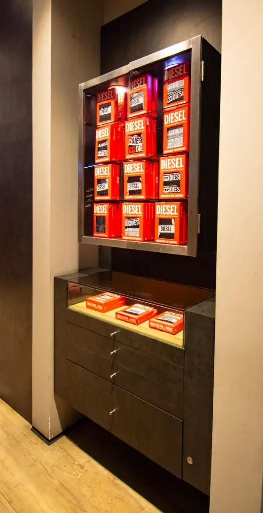 Reseña: Este proyecto se convirtió en un desafío para el equipo de Alatura, ya que se requería lograr un equilibrio entre la imagen de Diesel como marca top en su segmento a nivel internacional y las posibilidades de producción en nuestro mercado, destacando la presencia del metal.
